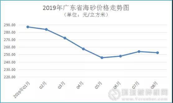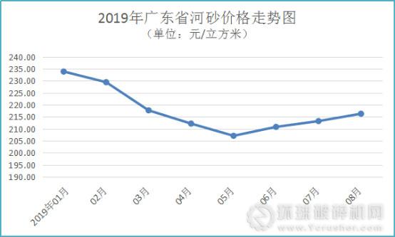4. 廣東省河砂價格連續3個月上漲,8月均價216元/方