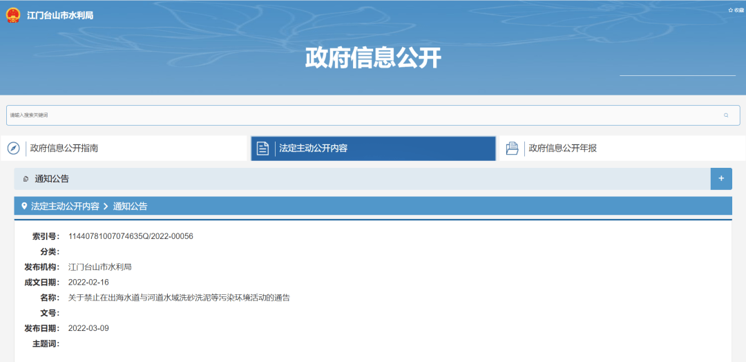 關于禁止在出海水道與河道水域洗砂洗泥等污染環(huán)境活動的通告