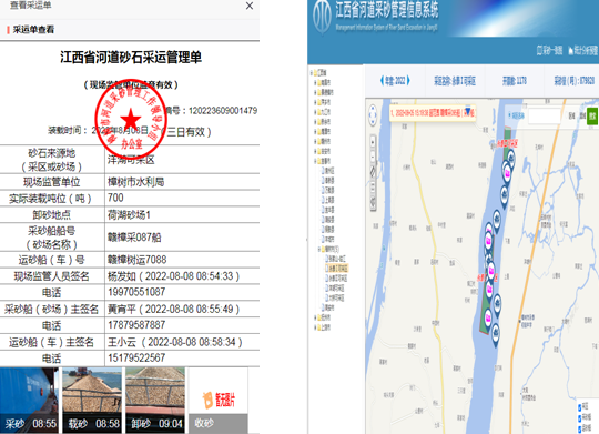 二,2019年10月,宜春市水利局率先在樟樹實(shí)施電子化采運(yùn)單試點(diǎn),形成河道砂石開采、運(yùn)輸、銷售的全程監(jiān)控一體化 “電子采運(yùn)管理單”,并于2020年1月份開始試運(yùn)行,2021年2月正式運(yùn)行。“現(xiàn)在通過電子化采運(yùn)單,采砂辦能更準(zhǔn)確地掌握每輛采運(yùn)砂船的采運(yùn)數(shù)據(jù)和具體位置,更有針對性地管理開采活動(dòng)。同時(shí),電子采運(yùn)單的推行也保障了采運(yùn)砂數(shù)據(jù)的真實(shí)性和可信性,大幅提高了采砂管理效率。”樟樹市采砂辦主任彭小如說。