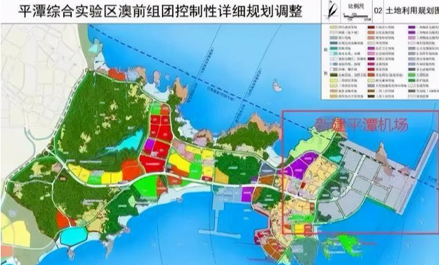 平潭綜合實驗區澳前組團控制性詳細規劃調整示意圖,圖中紅框部分擬建設海上機場