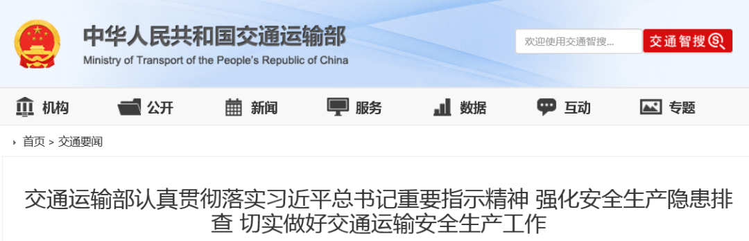 一,交通運輸部認真貫徹落實習近平總書記重要指示精神 強化安全生產隱患排查 切實做好交通運輸安全生產工作日前,為認真貫徹習近平總書記關于“3·21”東航MU5735航空器飛行事故重要指示精神和李克強總理等中央領導同志批示要求,舉一反三,壓實責任,交通運輸部就做好交通運輸安全生產工作進行了緊急部署。